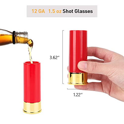 - SHOTGUN SHOTS GIFT SET: 4 Plastic Shot Glasses are modeled after 12 Gauge Shells, that make a great addition to mancave, bar, or party.