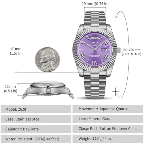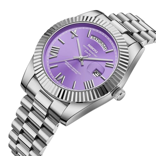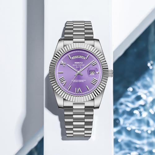 - [Classic Men’s Watch] The NIBOSI men’s analog watch features a 1.57-inch (40 mm) dial with day-date calendar display. Stainless steel construction and timeless design transition from business meetings to casual events, meeting modern men’s style needs