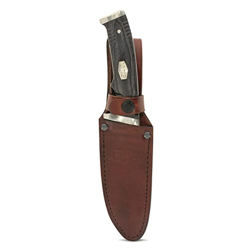 Old Timer Heritage Series 169OT 10.25in Fixed Blade Knife with Stainless Steel Drop Point Blade, Laminate Wood Handle, Full Tang Design, and Leather Sheath for Hunting, Camping, EDC, and Outdoors
