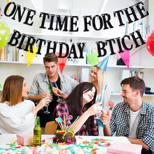 One Time for The Birthday Lady Banner – Happy Birthday Bunting Backdrops – Funny Birth Day Sign, Woman Girl Celeration Party Decorations Supplies, Black Glitter