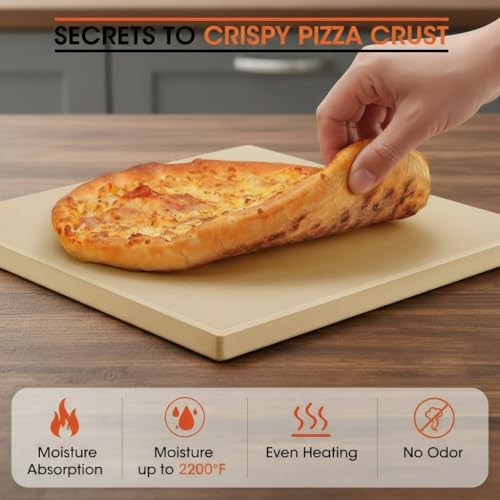 • 【Convection Baking To Enhance Tastes】- Cordierite stone absorbs moisture from the pizza to make an evenly cooked, delectably crispy crust pizza with no soggy centers! It provides a heat-directing barrier between flame and pizza and retains the heat, allowing it to circulate around the food with airflow, creates a convection baking effect, prevents charring and burning, enhances the taste and tenderness of your food.