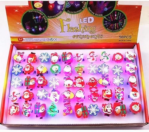 Qvatoxis Christmas Party Favors 50Pcs Light Up Glow Rings Party Supplies Flashing Glowing Finger Rings Decoration for Kids Adults