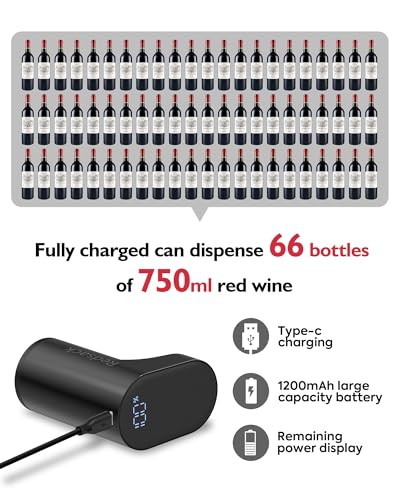 - Why Wait?This Rechargeable wine dispenser uses Type-C charging and can dispense 66 bottles of 750ml wine once fully charged. This dispenser is ideal for parties, family events, or as a stylish gift. Packaged in a premium box, it’s the perfect upgrade for any home bar. Step into the future of elegant, smart pouring today