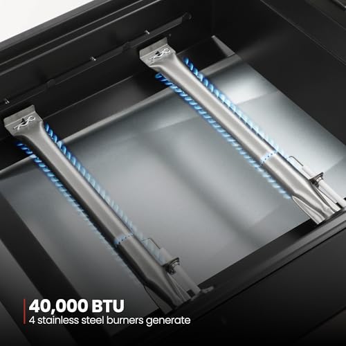 - Powerful Performance: four independently controlled stainless steel burners emit up to 40,000 BTU (10,000 BTU each) performance totally, which evenly distribute heat to 430 sq. in. cooking space for consistent cookout