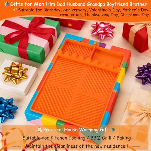 Silicone Tools Mat for Griddle Kitchen Cooking Baking Countertop-Side Shelf Spatula Mat with Drip Pad for Blackstone Weber Traeger Pit Boss Flat Top Grill Smoker- BBQ Accessories Gifts for Men(Orange)