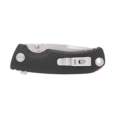 SOG Tellus ATK Outdoor Assisted Opening Frame Lock Folding Knife | Ambidextrous GRN Handle | CRYO 440C Stainless Steel Blade | Adjustable Belt Clip, Black/Blaze Orange