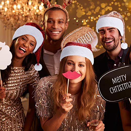 Syhood 2 Pieces Christmas Sequin Santa Hat Sparkly Glitter Hats for Christmas New Year Holiday Adults Party Supplies(Rose Gold, Red)