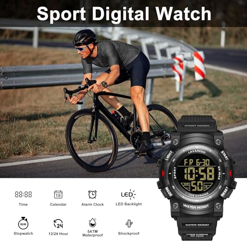 Timever Men’s Digital Watch Sports Outdoor Waterproof Watches for Men with LED Backlight Alarm Stopwatch Mens Watches Digital Chronograph Military Date