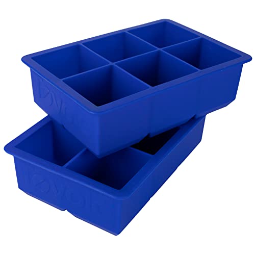 Tovolo Large 2” King Cube Ice Tray Pack of 2 Stratus Blue Ice Cube Trays for Whiskey Cocktails Smoothies, Big Square Ice Cube Mold Silicone Freezer Tray for Perfect Cubes BPA Free Dishwasher Safe