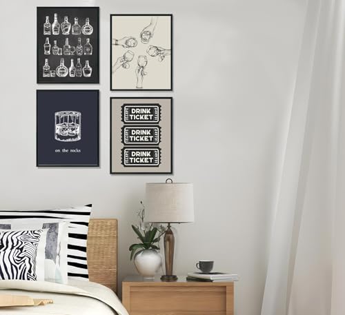 ULEGIE Bar Cart Decor, Wall Art Set of 4, Whiskey Posters for Men College Dorm Home Club, Cool Things for Home Bar Decorations, 8×10 Inch Unframed