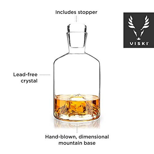 Viski Mountain Whiskey Decanter with Stopper, Hand Blown Liquor Decanter for Bourbon, Scotch, Spirits, Wedding Gifts, Anniversary Gifts for Men, Elegant Home Bar Accessories, 24 oz (709 ml)