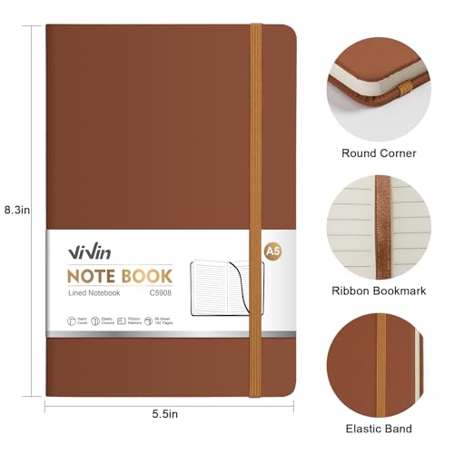 ViVin Lined Journal Notebooks, 3 Pack, (Black, Navy, Brown), 192 Pages, Medium 5.5 x 8.3 inch, College Ruled, A5 Hardcover Notebooks, Journaling Notebooks for Work, Writing, School