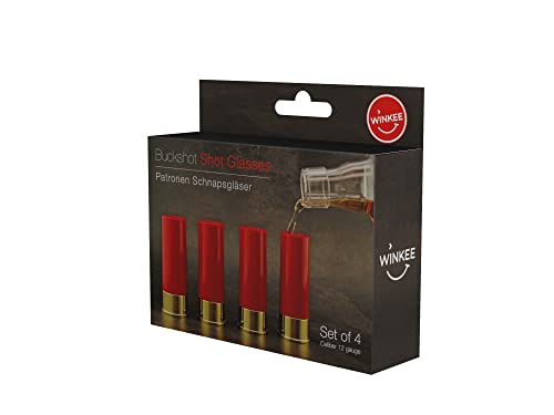 Winkee – 4 Shotgun Shot Glasses: Bullet Casing Shots | Shot Glass Designed Like Shotgun Shells | Plastic Tequila Shot Glasses | Shot Cups for Parties and Festivals